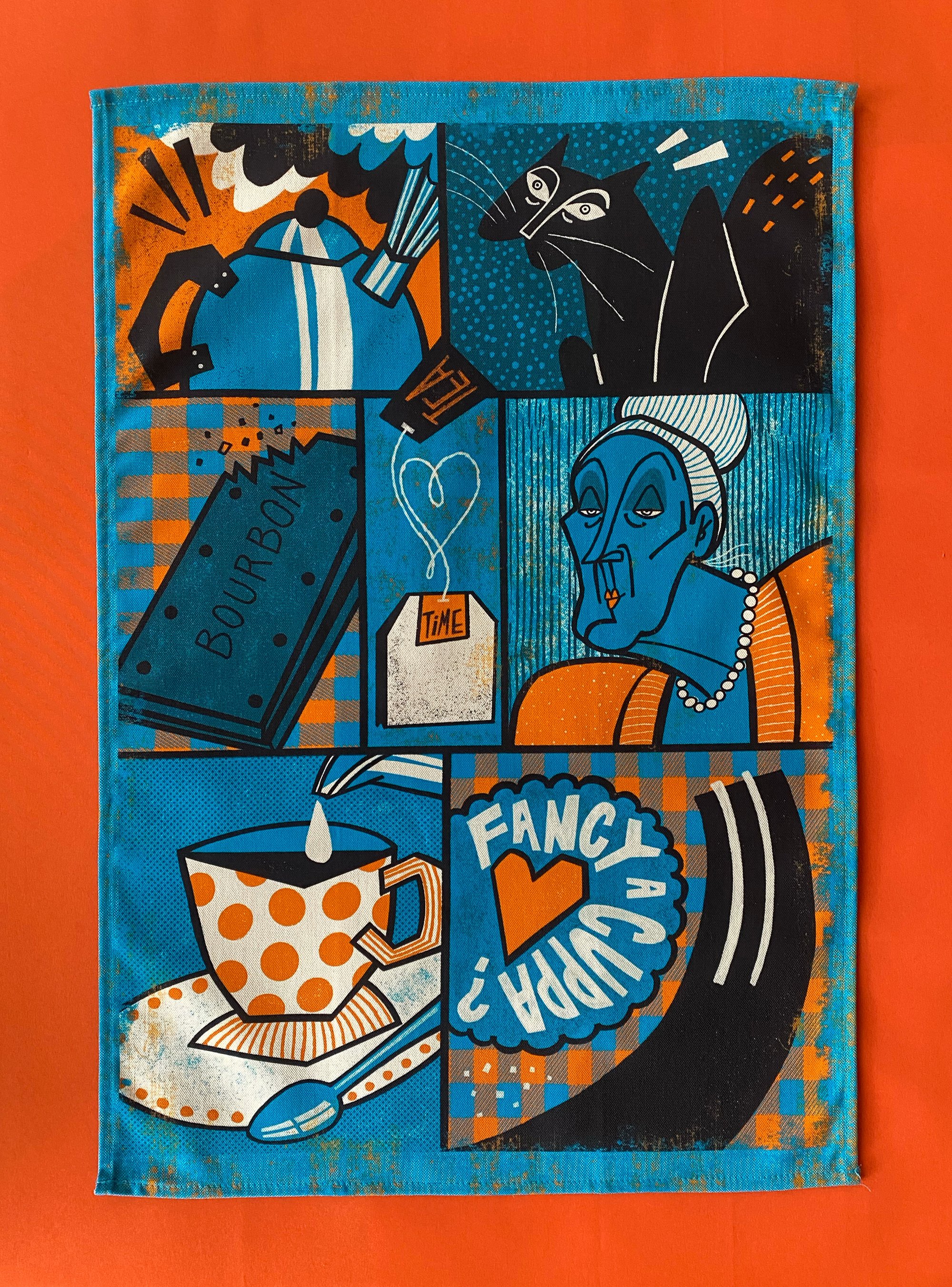 Tea towel for those who are passionate about tea. And the Bourbons. And the custard cream. Oh yes, and the Jammy Dodgers.
