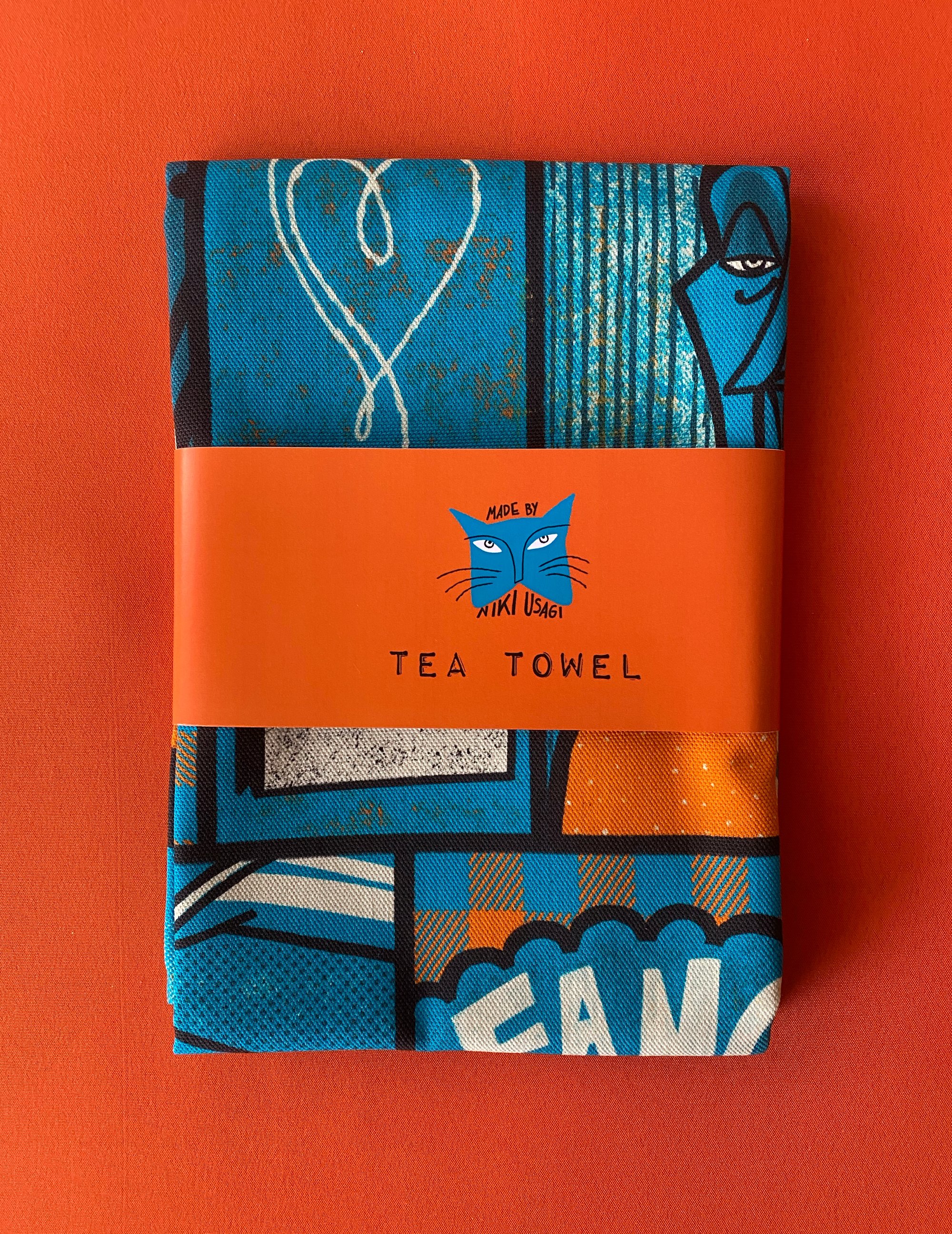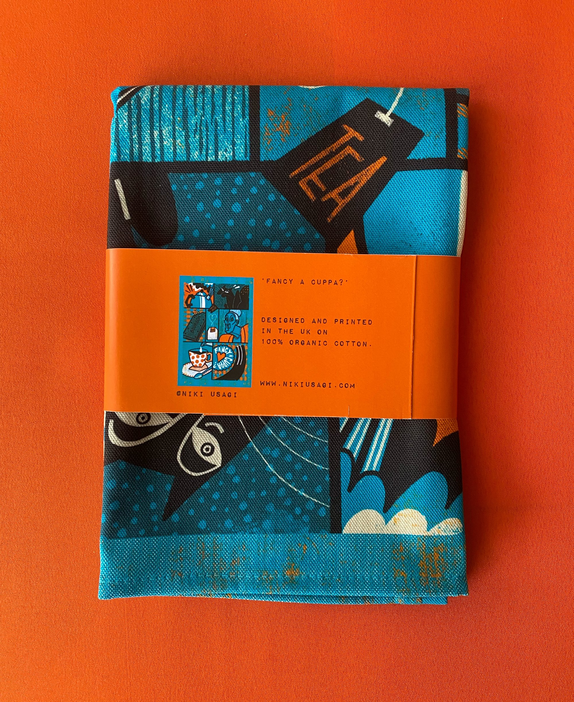 Designed by me, Niki Usagi, and printed in the UK on 100% unbleached, organic cotton. Super absorbent, super vivid colours.